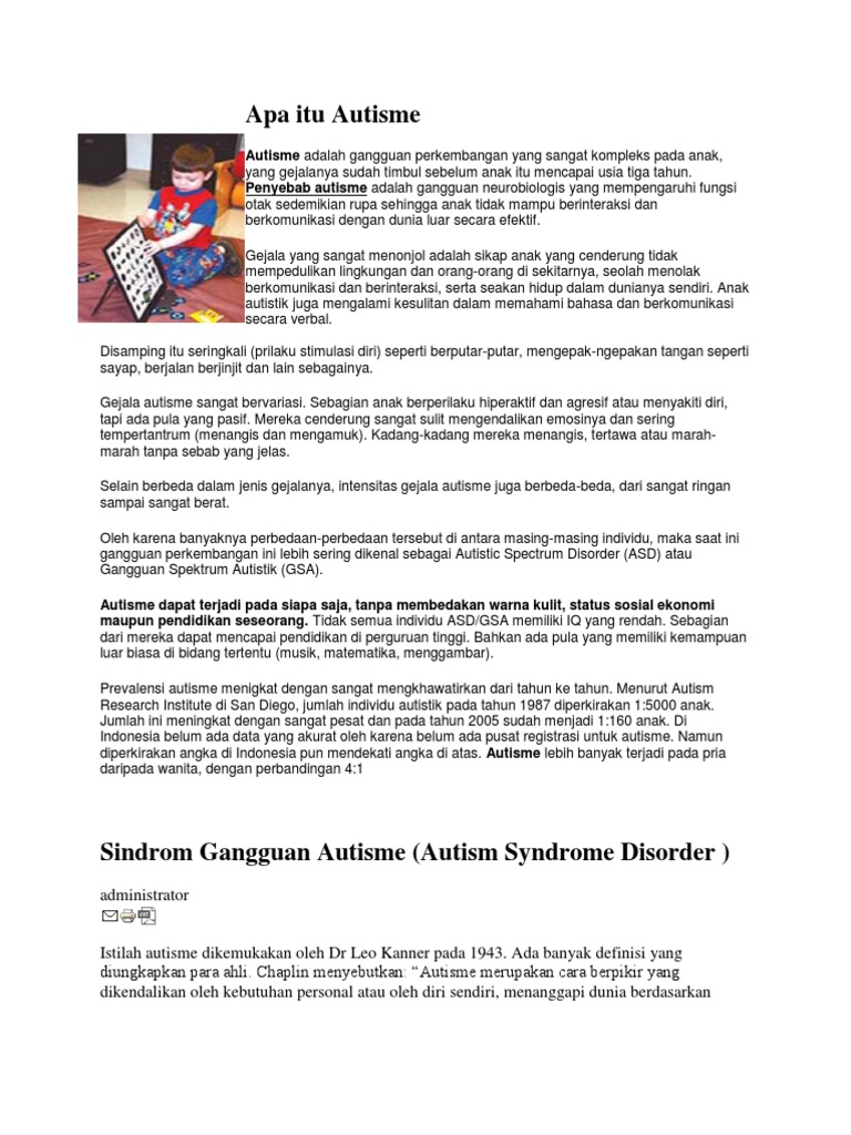 Pengertian Autis Dan Derajat Autisme Dalam Pembelajaran Silabus