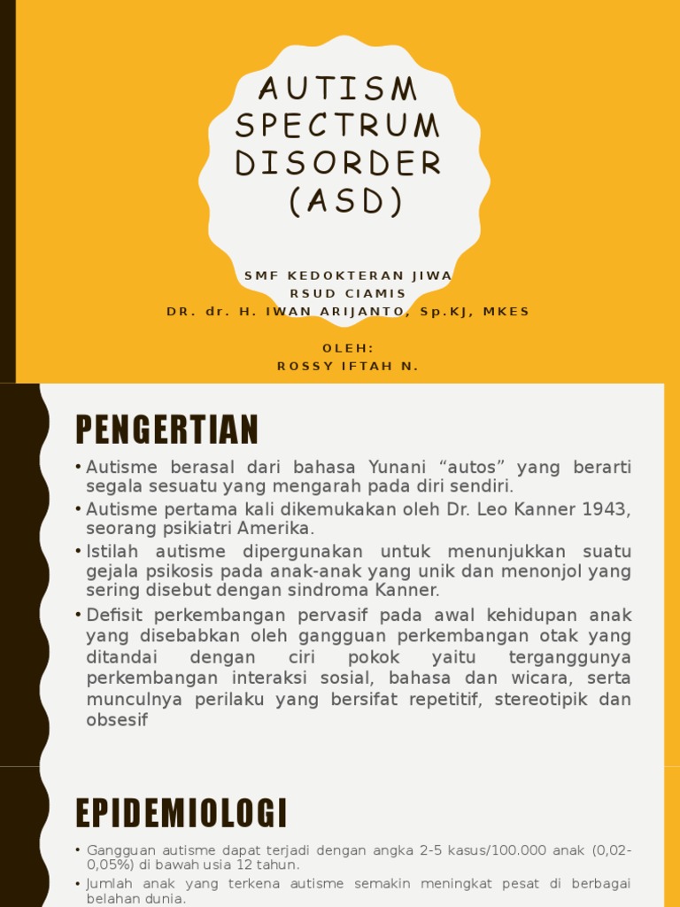 Pengertian Autism Spectrum Disorder Asd Merupakan Kelainan Perkembangan Sistem Saraf Pada Seseorang Yang Diakibatkan Oleh Faktor Hereditas Gejalanya Ppt Download